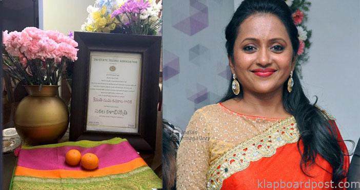 తెలుగు స్టార్ యాంకర్ సుమకు అమెరికాలో అరుదైన సత్కారం లభించింది. అంతర్జాతీయ మహిళా దినోత్సవం సందర్భంగా చికాగోలోని ట్రై-స్టేట్ తెలుగు అసోసియేషన్(టీటీఏ) ఆధ్వర్యంలో యాంకర్ సుమ కనకాలతో ‘సుమతో సందడి’ అనే కార్యక్రమాన్ని అమెరికాలో నిర్వహించారు. ఈ కార్యక్రమాన్ని అమెరికా నలుమూలలా ఉన్న మహిళలతో ఏర్పాటు చేశారు. ఈ సందర్భంగా టీటీఏ సంస్థ అధ్యక్షురాలు అపర్ణ అయ్యలరాజు ఈ కార్యక్రమ ప్రారంభోపన్యాసం చేస్తూ సంస్థ భవిష్యత్ ప్రణాళికలను వివరించారు. దాదాపు రెండు వందల మందికి పైగా పాల్గొన్న ఈ కార్యక్రమంలో మహిళలు కూడా తమ టాలెంట్ చూపారు. మూడు గంటల పాటు జరిగిన ఈ ప్రోగ్రామ్లో ‘సుమతో సందడి’ లో ప్రశ్నలు-సమాధానాలు అనే పోటీ యాంకర్ సుమ తనదైన శైలి, సమయస్ఫూర్తితో షోకి మంచి జోష్ ఇచ్చారు.