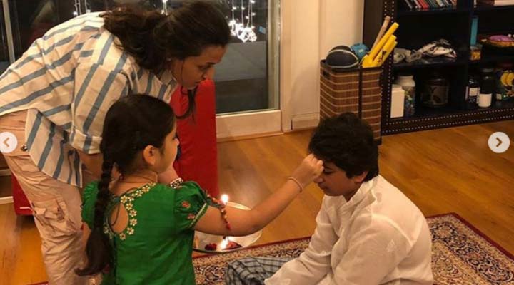 కార్తీకమాసంలో ఉత్తరాది రాష్ట్రాలకే పరిమితమైన ‘బాయిదూజ్’ వేడుక ఇప్పుడు దక్షిణాదికీ విస్తరించింది. ఈ పండగ రోజు అక్క,చెల్లెళ్లు తమ సోదరులకు హారతి ఇచ్చి నిండు నూరేళ్లు సుఖంగా ఉండాలని పూజలు చేస్తారు. అంతేకాదు ఆ రోజు తమ సోదరులకు బహుమతులు కూడా ఇస్తారు. రాఖీ పండుగ తరహాలో జరిగే ఈ వేడుక బుధవారం టాలీవుడ్ హీరో, ప్రిన్స్ మహేష్బాబు ఇంట్లో చేసుకున్నారు. కూతురు సితార తన అన్న గౌతంకృష్ణకు నుదుటున బొట్టు పెట్టి హారతి ఇచ్చింది. ఈ సెలబ్రేషన్స్ ఫొటోలను నమ్రతా శిరోద్కర్ ఇంస్టాగ్రామ్ లో పోస్టు చేశారు. వీటిని చూసిన ప్రిన్స్ అభిమానులు తెగ ఆనందపడుతున్నారు.