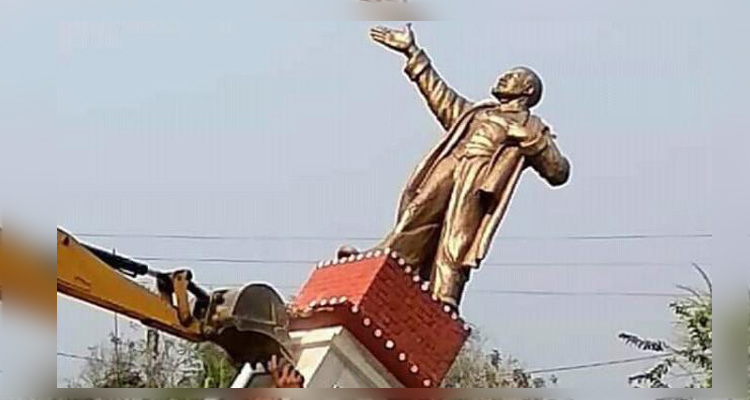 The Iconic communist revolutionary leader Lenin statue, which was situated at the center of the Belonia town of Tripura, was destroyed by the BJP workers.