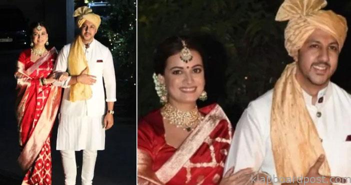 బాలీవుడ్ నటి దియా మీర్జా ముంబై బిజినెస్ మేన్ వైభవ్ రేఖీని పెళ్లాడారు. సోమవారం సాయంత్రం ఈ వివాహానికి సంబంధించిన ఫొటోలు సోషల్ మీడియాలో వైరల్ అయ్యాయి. దియా.. వైభవ్ ఇరువురికి ఇది రెండో వివాహం. హిందూ సాంప్రదాయంలో వీరి వివాహం జరిగినట్లు ఫొటోలు చూస్తే పెళ్లి అని అర్థమవుతోంది. పెళ్లిలో సాంప్రదాయ వివాహ ఆభరణాలతో ఎరుపు రంగు జరీ చీరలో దియా చాలా అందంగా కనిపించారు. అత్యంత సన్నిహితులు దంపతుల బంధువుల సమక్షంలో ఈ వివాహం జరిగింది. బాలీవుడ్ నుంచి అదితీరావు హైదారి.. జాకీ భగ్నాని.. గౌతమ్ గుప్తా వివాహంలో అతిథులుగా కనిపించారు.