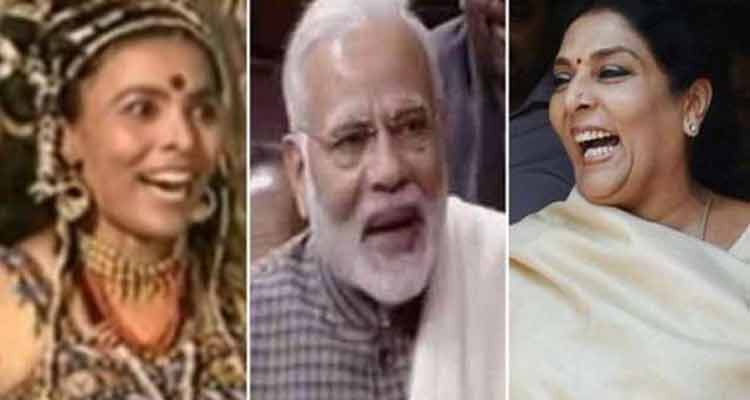 While he was Speaking on Motion of Thanks speech in the Upper House. Where Renuka Chowdhury, who was continuously talking and laughing at Modi in the house.
