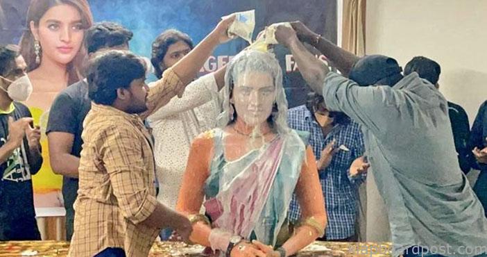తమ అభిమాన నటి నిధికి తెలుగు తమిళ అభిమానులు కలిసి ఫిబ్రవరి 14 ప్రేమికుల రోజున చెన్నైలో విగ్రహం చేయించి గుడి కట్టారు. అంతేగాక విగ్రహానికి పాలాభిషేకం చేసి పూజలు చేశారు. అనంతరం కేక్ కట్ చేయించారు. ఈ విషయాన్ని ట్విటర్లో నిధి ఫ్యాన్స్ క్లబ్ షేర్ చేయగా.. ప్రస్తుతం ఈ ఫోటోలు సోషల్ మీడియాలో వైరల్ అవుతున్నాయి. ఎంత అభిమానం ఉంటే ఇలా విగ్రహం ప్రతిష్టించి పూజలు చేస్తారని నెటిజన్లు షాక్ అవుతున్నారు. మరి ఈ విషయం నిధి దాకా చేరిందో లేదో తెలీదు. ఒకవేళ తెలిస్తే ఎలా స్పందిస్తుందో వేచిచూడాలి. ఇక కొందరు నెటిజన్లు నిధి ఏం చేసిందని గుడి కట్టారు అంటూ ప్రశ్నిస్తున్నారు.