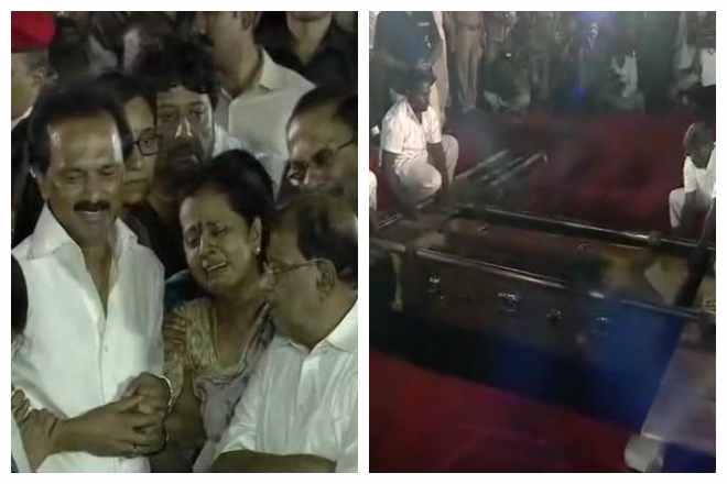 The leaders’ sons MK Stalin and Tamizharasu and his family members followed the casket for the funeral procession at the Marina Beach. Notably, the funeral procession at the Marina Becah happened after the Madras High Court allowed the burial of DMK patriarch M. Karunanidhi at Marina Beach. The petition was filed by the DMK at the court for granting permission to erect a memorial after the state government led by Tamil Nadu AIDMK chief minister Edappadi K. Palaniswami denied the permission owing to political rivalry. In the petition, the DMK sought permission to erect a memorial next to party founder CN Annadurai’s memorial.