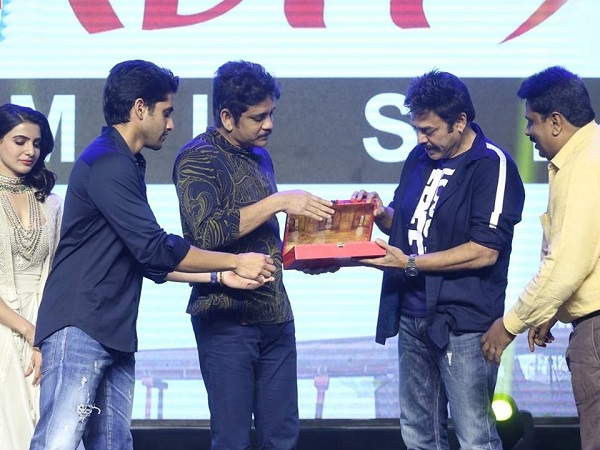 Majili Movie Pre Release Event Photos.The film features Naga Chaitanya, Samantha Akkineni and Divyansha Kaushik in lead roles. The pre-release event of Majili took place yesterday night in Hyderabad and the grand show was a star-studded affair with both Akkineni Nagarjuna and Victory Venkatesh gracing the stage.