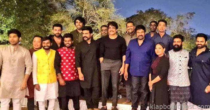 మెగాస్టార్ చిరంజీవి సంక్రాంతి పండుగ సందర్భంగా తన ఇంట్లో నిర్వహించిన వేడుకలో మెగా కుటుంబ సభ్యులతో పాటు అక్కినేని నాగార్జున కూడా పాల్గొన్నారు. వారందరూ దిగిన గ్రూప్ ఫొటో సోషల్ మీడియాలో వైరల్ అవుతోంది. ఇందులో చిరంజీవితో పాటు నాగార్జున, రామ్ చరణ్, అల్లు శిరీష్, వరుణ్ తేజ్, సాయి తేజ్ పలువురు ఉన్నారు. యంగ్ హీరోలకు పోటీనిస్తూ చిరంజీవి, నాగ్ మరింత యంగ్ గా కనపడుతున్నారని నెటిజన్లు కామెంట్లు చేస్తున్నారు. ఈ వేడుకలో హైదరాబాద్ కు చెందిన మ్యూజిక్ బ్యాండ్ కచేరి కూడా చేసిందని తెలుస్తోంది. పండుగ సందర్భంగా మెగా కుటుంబ సభ్యులంతా కలిసి భోజనం చేశారు.