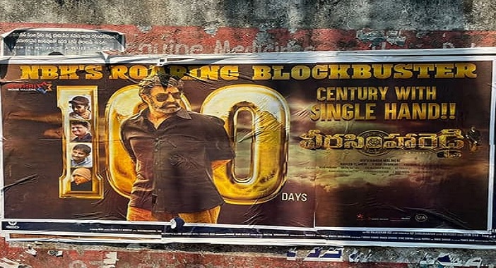Some of these posters reading “NBK’s Roaring Blockbuster-Century with single hand” have popped up in various corners of Hyderabad city.