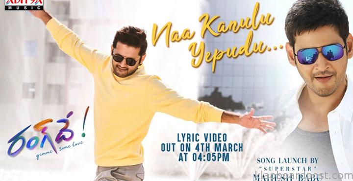 టాలీవుడ్ యంగ్ హీరో నితిన్-కీర్తిసురేశ్ నటిస్తున్న తాజా చిత్రం ‘రంగ్ దే’. వెంకీ అట్లూరి దర్శకత్వం వహిస్తున్న ఈ సినిమాకి దేవీ శ్రీ ప్రసాద్ తన సంగీతం అందిస్తున్నాడు. ఈ క్రమంలో రాక్ స్టార్ దేవిశ్రీప్రసాద్ కంపోజిషన్ లో యువ సంచలనం సిద్ శ్రీరామ్ ఆలపించిన ”నా కనులు ఎపుడు” అనే గీతాన్ని విడుదల చేస్తున్నట్లు వెల్లడించారు. ఈ అనౌన్స్ మెంట్ సందర్భంగా సాంగ్ ప్రోమో వీడియో చిత్ర బృందం విడుదల చేసింది. సూపర్ స్టార్ మహేష్ బాబు మార్చి 4న సాయంత్రం 4.05 నిమిషాలకు ఈ మనోహరమైన పాట లిరికల్ వీడియోను విడుదల చేయనున్నట్లు చిత్ర యూనిట్ ప్రకటించింది. ఈ సినిమాని పీడీవీ ప్రసాద్ సమర్పణలో సితార ఎంటర్ టైన్ మెంట్స్ బ్యానర్ పై సూర్యదేవర నాగవంశీ తెరకెక్కిస్తున్నాడు. మార్చి 26న విడుదల కానుంది.