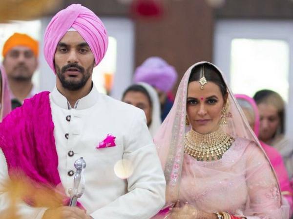 Actress Neha Dhupia got married to her long-time boyfriend Angad Bedi today (May 10) after dating for four years. The couple got married as per traditional Sikh ceremony at a gurudwara in New Delhi. The wedding was a hush-hush affair and was anno9unced by Neha herself.