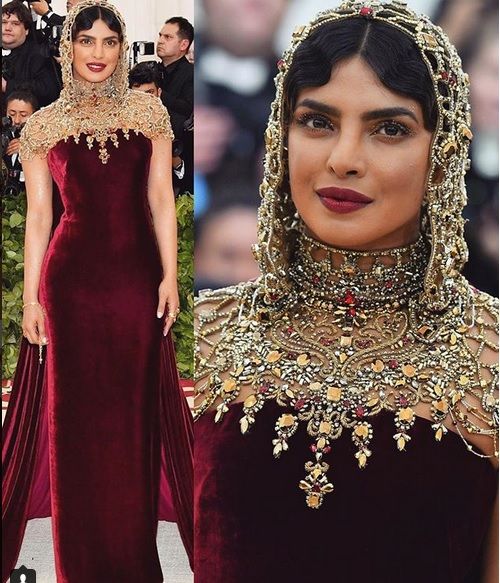 This year’s Met Gala and Priyanka Chopra are both trending and for all the right reasons. PeeCee’s celestial wardrobe where she was dressed in velvet gown paired with gold chainmail coif has received thumbs up from the fashion police. The custom-made costume was designed by Ralph Lauren and keeping in mind of the event’s theme – Heavenly Bodies: Fashion and the Catholic Imagination -, the designer came up with the stunning strapless velvet gown.
