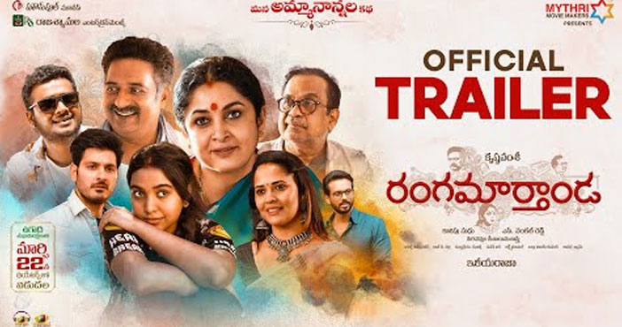 ప్రముఖ దర్శకుడు కృష్ణవంశీ డైరెక్షన్లో వస్తున్న తాజా చిత్రం ‘రంగమార్తాండ’. కాలెపు మధు – వెంకట్ నిర్మించిన ఈ సినిమాకి, ఇళయరాజా సంగీతాన్ని సమకూర్చారు. ప్రకాశ్ రాజ్, రమ్యకృష్ణ, బ్రహ్మానందం ప్రధాన పాత్రలను నటించిన ఈ సినిమా ‘ఉగాది’ కానుకగా ఈ నెల 22వ తేదీన విడుదల కానుంది.
