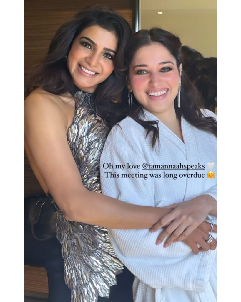Accompanying the actresses in the picture was Tamannaah’s boyfriend, Vijay Varma, who added to the celebratory atmosphere with his presence. Samantha’s heartfelt caption, “Oh my love @tamannahspeaks This meeting was long overdue,” reflected the genuine bond shared between the two actresses.