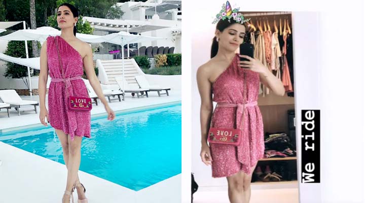 టాలీవుడ్ స్టార్ హీరోయిన్గా రాణిస్తున్న సమంత మరోసారి తన సరికొత్త ఫ్యాషన్తో నెటిజన్ల చూపులు తన వైపునకు తిప్పుకొన్నారు. తన మామయ్య నాగార్జున పుట్టినరోజు వేడుక కోసం ధరించిన బార్బీ పింక్ డ్రెస్ ఇప్పుడు హాట్టాపిక్గా మారింది. అక్కినేని ఫ్యామిలీ ఇటీవల విహారయాత్ర కోసం స్పెయిన్లోని ఐబిజాకు వెళ్లారు. ప్రస్తుతం నాగచైతన్య, సమంత, అఖిల్, నాగార్జున, అమల తదితరులు ఐబిజా ట్రిప్ను ఎంజాయ్ చేస్తున్నారు. నాగ్ గురువారం తన 60వ పుట్టిన రోజును కూడా అక్కడే జరుపుకొన్నారు. ఈ సందర్భంగా ఏర్పాటు చేసిన ఆయన బర్త్డే పార్టీలో సామ్ ప్రత్యేకమైన లుక్లో మెరిశారు. పార్టీ కోసం ఆమె వన్-షోల్డర్ షిమ్మర్ డ్రెస్, విలువైన కాస్ట్యూమ్స్ ధరించారు. ఆ లుక్లో ఉన్న ఫొటోలను నటి శుక్రవారం ఇన్స్టాగ్రామ్లో షేర్ చేశారు. వీటన్నింటి ధర రూ.2 లక్షలని సమాచారం.