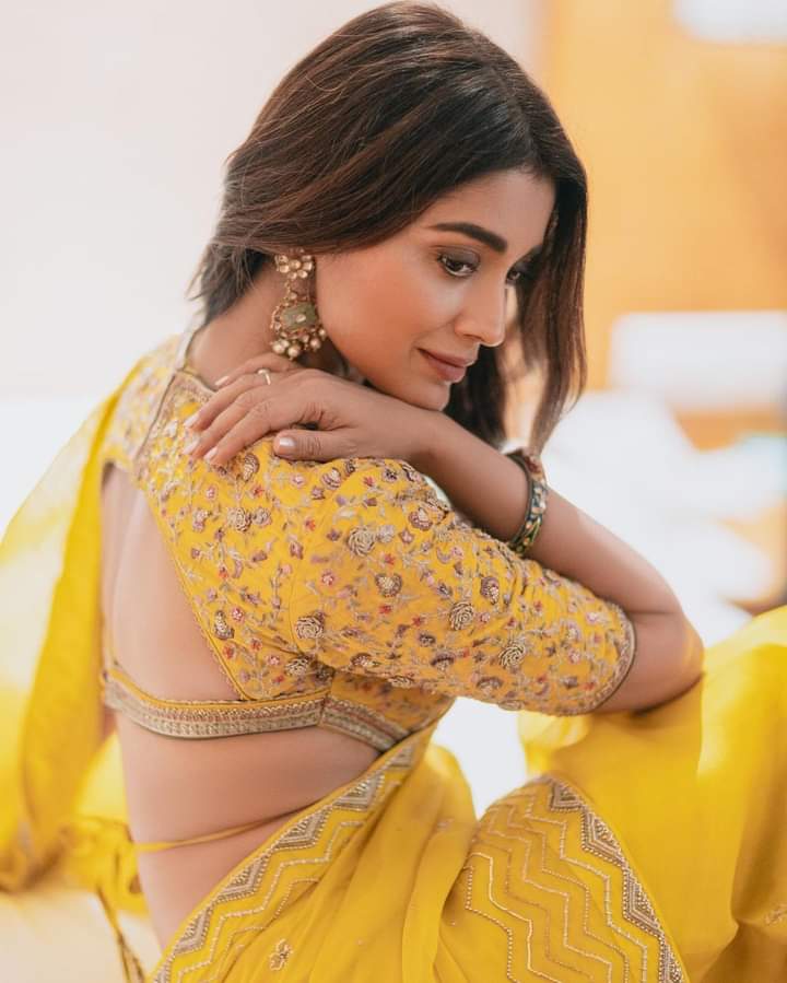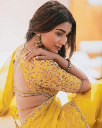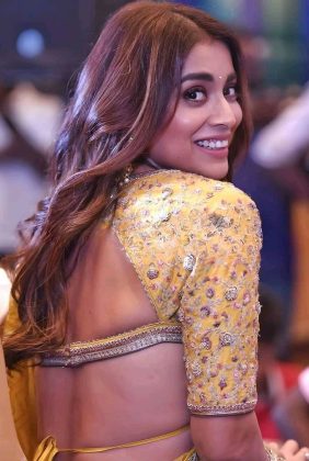 Actress Shriya Saran giving us some vintage vibes in this yellow saree. Shriya Saran at Kabzaa Movie Event. Shriya Saran Looking Gorgeous in Yellow Saree.