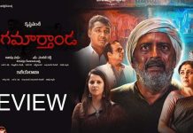 In this first-look poster, Sreenivas goes shirtless and looks like a beast, flaunting his chiseled physique. He is seen standing in the water with a copper bowl in one hand, and there are injuries on his back. He wears sacred threads around his neck and on his arm. The posture and the ferocious clouds indicate the aggression of Sreenivas’ character. The first-look poster
