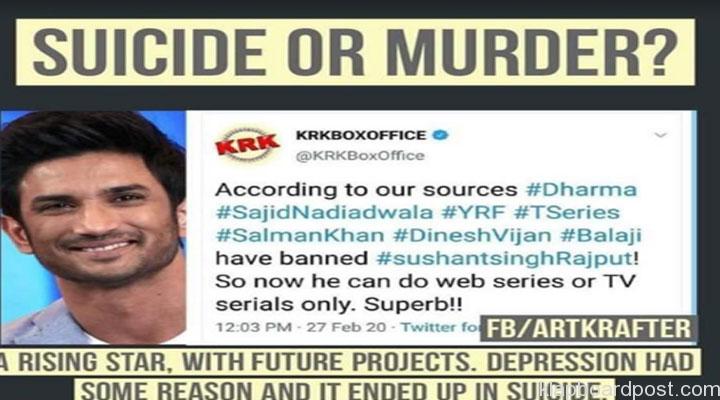 Soon after his demise, KRK yet again tweeted stating he know the reason behind his death but he is afraid of naming Bollywood biggies. He wrote, “I know many facts why Sushant Singh Rajput committed suicide n I can make a video about it. But I won’t. I don’t want to make all big powerful Bollywood ppl my enemies. Woh Log Aise hi mere Peeche Pade hain, for giving honest reviews only. So I don’t want to make them more angry.” Soon netizens started urging him to call out and name them publicly.