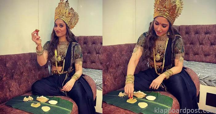 మిల్కీ బ్యూటీ తమన్నా ఈ సారి దేవతగా కనిపించబోతుంది. తాజాగా నల్ల చీర, బ్లౌజ్లో నెత్తిన కిరీటం పెట్టుకుని, మెడలో ఆభరణాలు వేసుకుని అరటాకులో భోజనం చేస్తూ కనిపించింది. తమన్నా సోఫాలో కూర్చొని అరటాకులో ఇడ్లీ, వడ, దోస ఆరగిస్తున్న ఫొటో ఇప్పుడు సోషల్ మీడియాలో ట్రెండింగ్ అవుతోంది. తాజా సమాచారం ప్రకారం ఎఫ్ 3 సినిమా కోసం ఇలా మారిపోయింది తమన్నా. తన భర్త వెంకటేశ్ చేజింగ్ చేసే పరాశక్తిగా కనిపించనుందట.