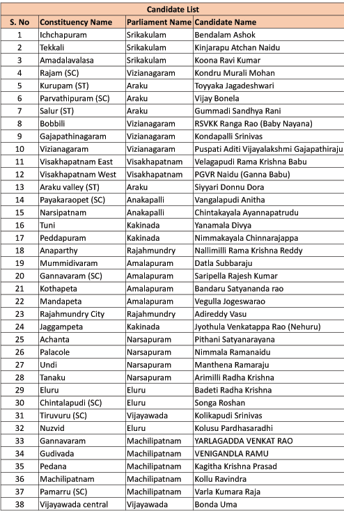 TDP-JANASENA FIRST LIST: సార్వత్రిక ఎన్నికలు సమీపిస్తున్నందున ఈసారి ఏపీ ఎన్నికలు చాలా స్పెషల్. టీడీపీ-జనసేన కలిసి ఈ ఎన్నికల్లో పోటీ చేస్తున్న సంగతి తెలిసిందే. గతంలోనూ ఈ రెండు పార్టీలు పొత్తుతో ఎన్నికలకు వెళ్లి విజయం సాధించిన సంగతి తెలిసిందే.