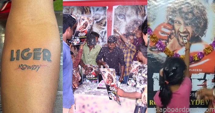 రౌడీ హీరో విజయ్ దేవరకొండకు ఉన్న ఫాలోయింగ్ గురించి ప్రత్యేకించి చెప్పనవసరం లేదు. తనదైన స్టైల్లో ప్రేక్షకుల్లో మంచి గుర్తింపు తెచుకున్నాడు. తాజాగా విజమ్ నటిస్తున్న చిత్రం నుంచి ‘ఫస్ట్లుక్’ విడుదలైంది. దీని అభిమానులు పండగలా సెలబ్రేట్ చేసుకుంటున్నారు. సినిమా విడుదలయిందా.. అన్నంత సందడి చేస్తున్నారు. పచ్చబొట్లు, బీర్ అషేకాలు, కేక్ కటింగ్లు, బాణాసంచా, స్వీట్లతో… షేక్ చేస్తున్నారు.
