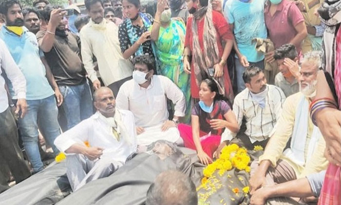 Two days after gas leakage from LG Polymers claimed 12 lives and affected hundreds of others, people of Venkatapuram village staged a protest on Saturday with three dead bodies at the chemical plant, demanding justice.