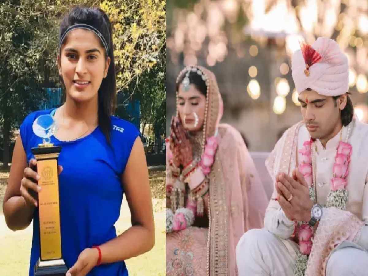 Neeraj Chopra, the former Olympic javelin champion announced his wedding on Sunday. He married Himani Mor, a tennis player. Neeraj shared this news on social media with photos from their private wedding. The ceremony was held in Himachal Pradesh. Only 40-50 close guests attended the event.